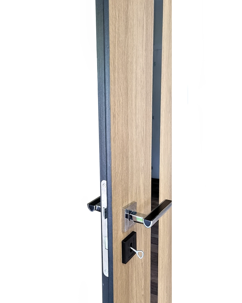 - Prețul cuprinde tot setul: Foie de ușă+Toc (grosime perete 85-115mm)+ pervaze pe ambele părți+balamale+broască. Manerul nu este inclus.
