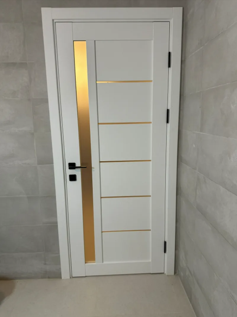 "Eleganță și funcționalitate îmbinate perfect în această ușă modernă. Rama robustă din lemn oferă stabilitate, în timp ce învelișul rezistent asigură durabilitate și ușurință în întreținere. Inserția verticală de sticlă adaugă un element de design contemporan, permițând luminii să pătrundă subtil. Broasca silențioasă magnetică completează ansamblul cu un mecanism smooth și discret, ideal pentru spații care necesită liniște. Perfectă pentru locuințe moderne, birouri sau spații comerciale care doresc să îmbine estetica cu performanța."
