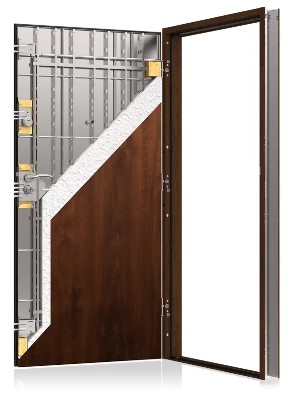 Ușa in varianta ELITE vine in mai multe straturi și presupune o carcasă din oțel cu panouri pe ambele părți care se pot schimba.